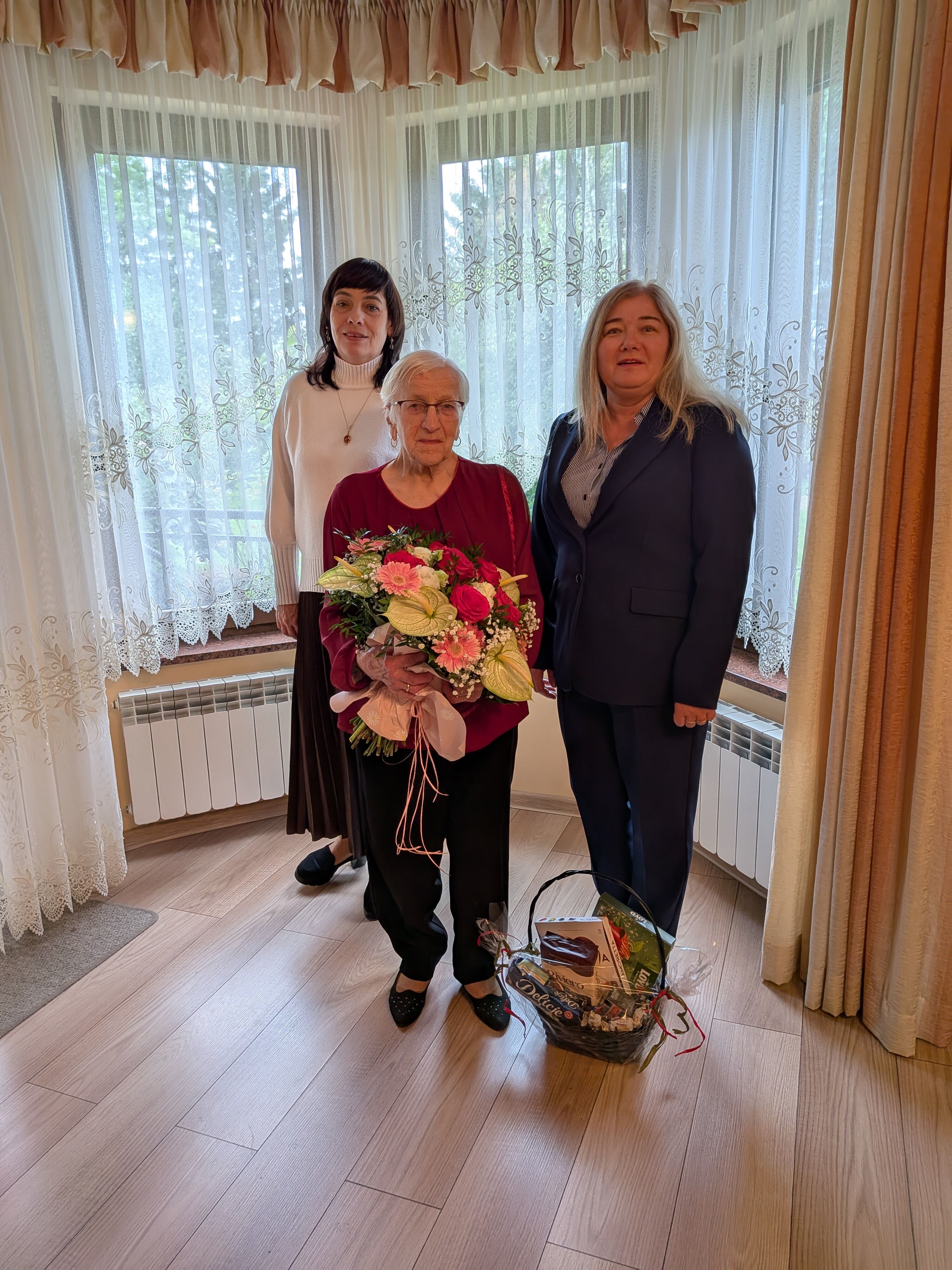 W tym doniosłym dniu Wójt przekazała Pani Genowefie listy gratulacyjne i życzenia od Wojewody Dolnośląskiej oraz z Kancelarii Prezesa Rady Ministrów.