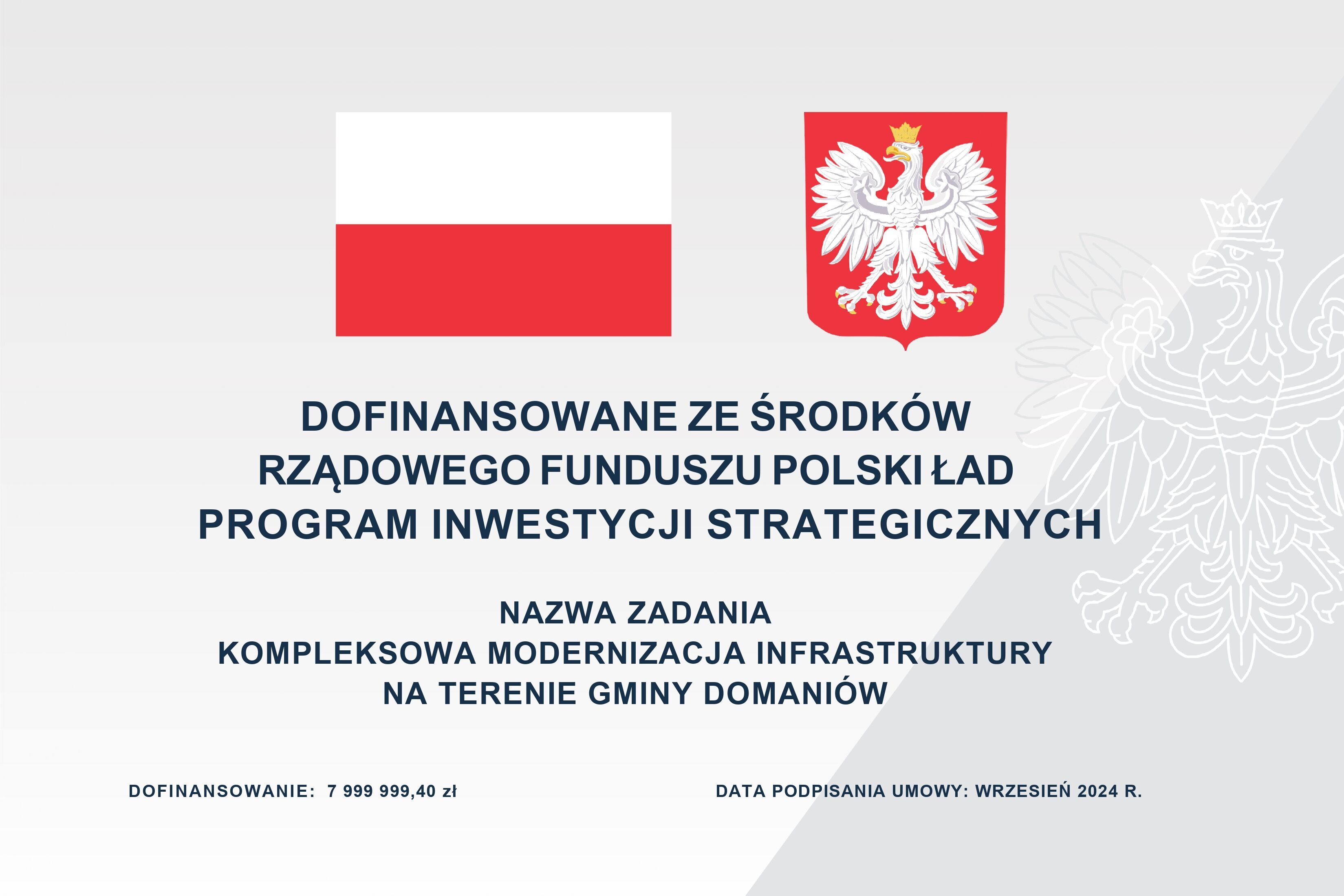 Remonty tych odcinków są częścią zadania pn.: Kompleksowa modernizacja infrastruktury drogowej na terenie gminy Domaniów dofinansowane ze środków budżetu państwa w ramach Rządowego Funduszu Polski Ład: Program Inwestycji Strategicznych.